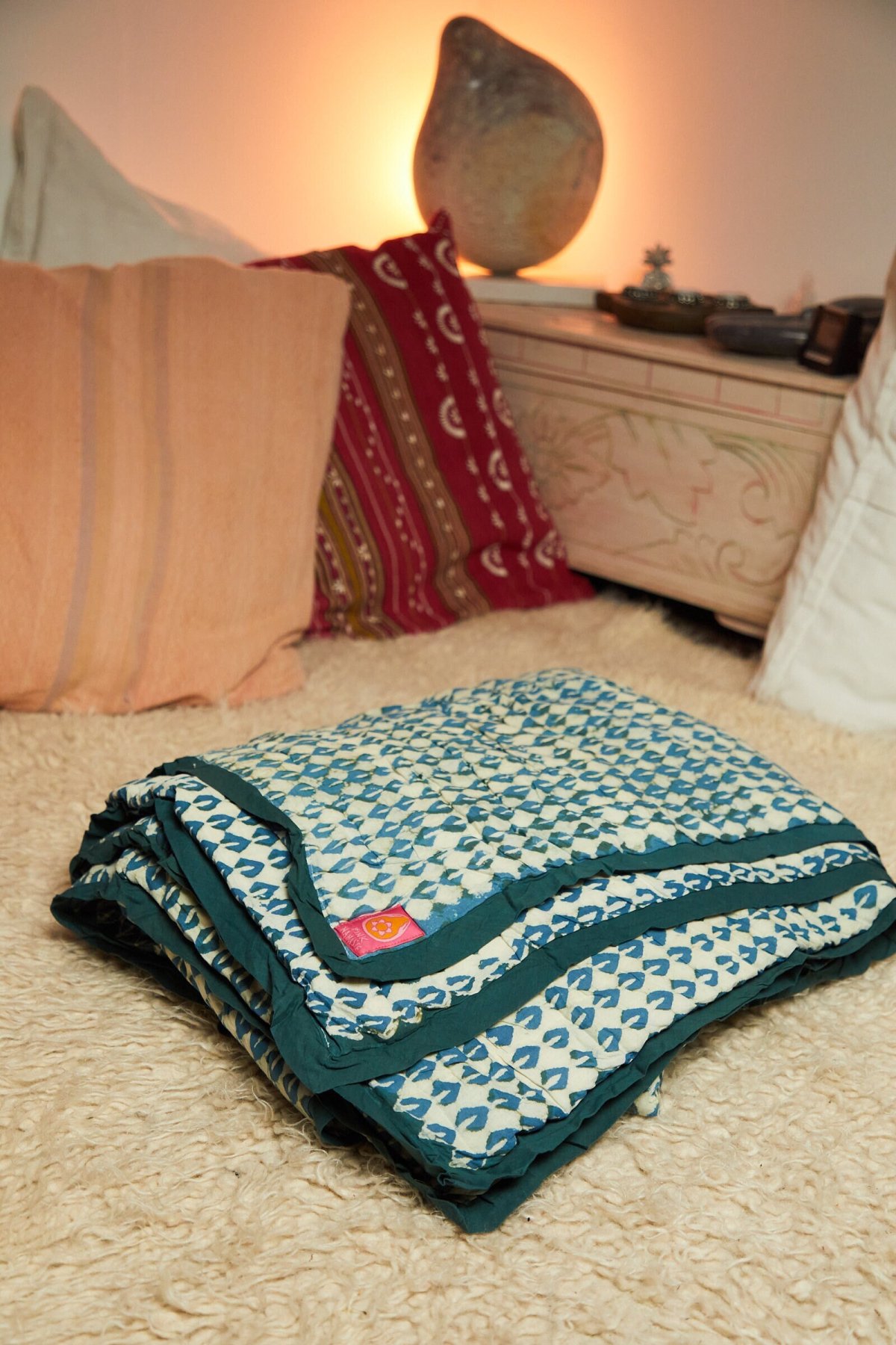 Our Blankets are handcrafted using the finest cotton fibers. The slight variations in color, texture and finish are the uniqueness of the human hand crafting. Creating each product is a lengthy process rooted in the crafts-based traditions of hand spinning, dying, weaving and wood block printing. This craft is a 2000 year old traditional method. We use both vegetable dyes and commercial dyes with the goal of minimizing our impact on the environment while striving for the best color properties.