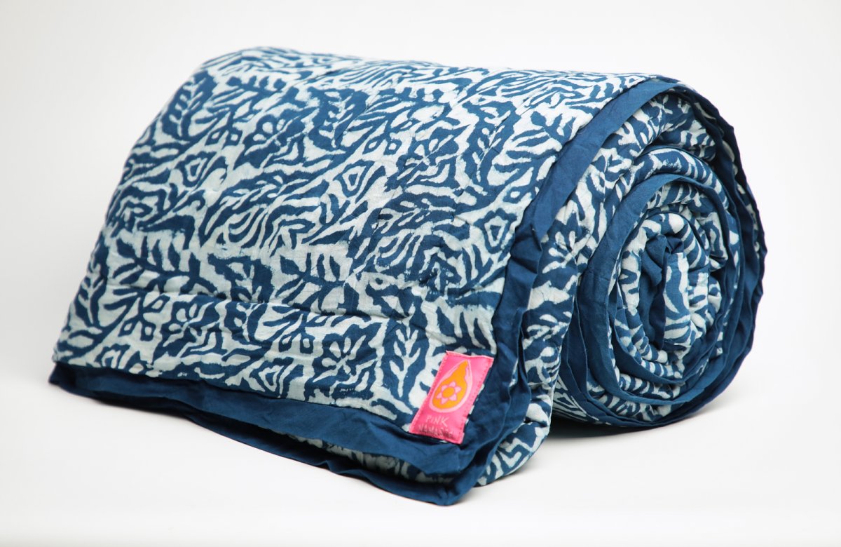 Our Blankets are handcrafted using the finest cotton fibers. The slight variations in color, texture and finish are the uniqueness of the human hand crafting. Creating each product is a lengthy process rooted in the crafts-based traditions of hand spinning, dying, weaving and wood block printing. This craft is a 2000 year old traditional method. We use both vegetable dyes and commercial dyes with the goal of minimizing our impact on the environment while striving for the best color properties. For our bleaching process we use only hydrogen peroxide which is completely biodegradable.